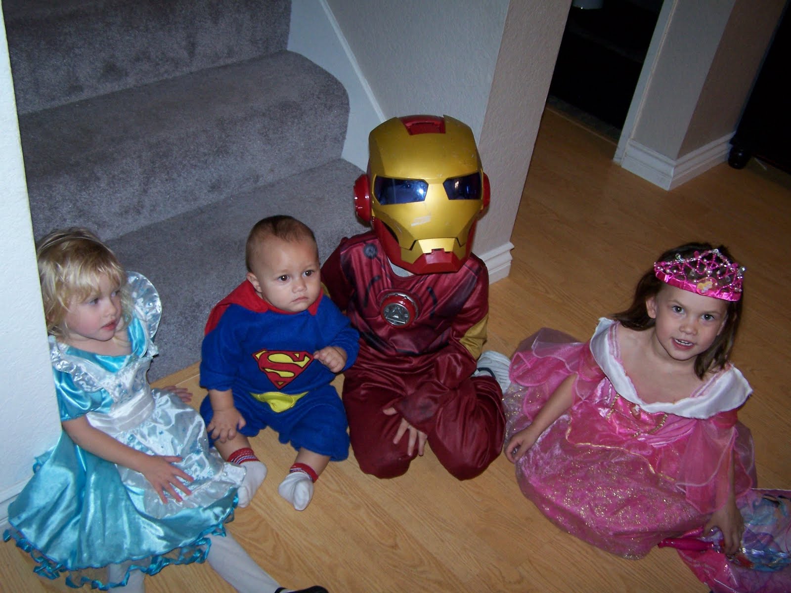 This year was all about the store bought costumes. Hunter really wanted to be Iron Man this year. At first we told him "No" because we didn't want him wearing a mask. On his Birthday he got the entire costume...suit, helmet, blaster arm and battery center. So, we decided to give in and let him be Iron Man.